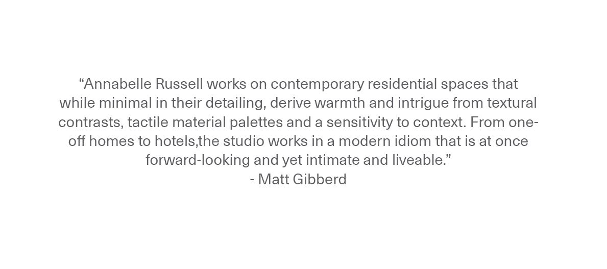 Annabelle & Co. is a contemporary architecture practice specialising in high end residential work. We use a collaborative approach across architecture, urban design, interiors and furniture design.
