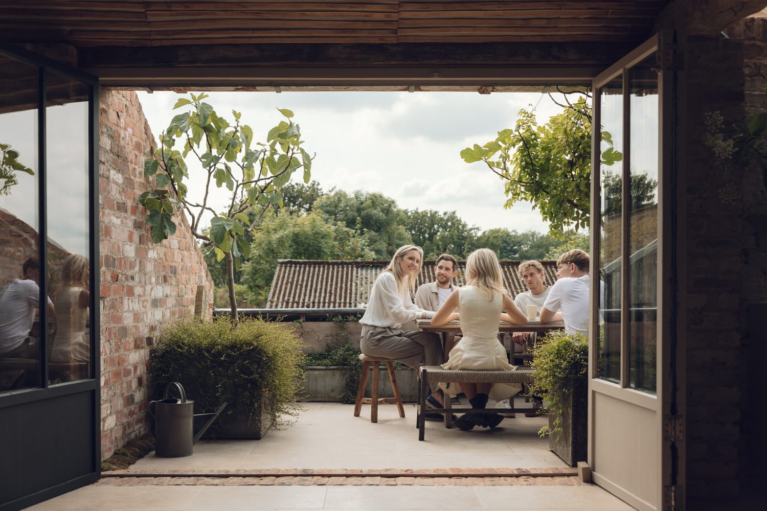 A pair of unique rooflights along the ridge and eave of the roof fills the working space with natural light. A roof terrace fitted atop the stables opens up the building to the farmyard below, further helping to provide a working environment filled with warm light.